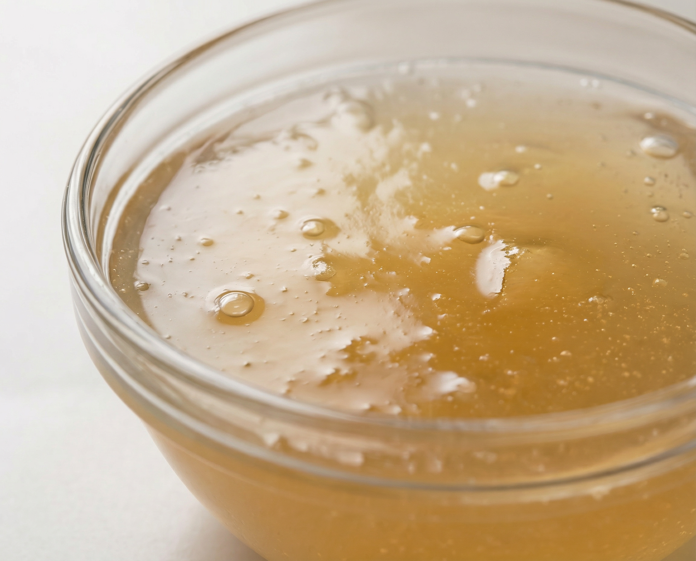 Sirve a temperatura ambiente o tibio (no caliente — para preservar los aminoácidos). Puede verterse directamente sobre la comida.